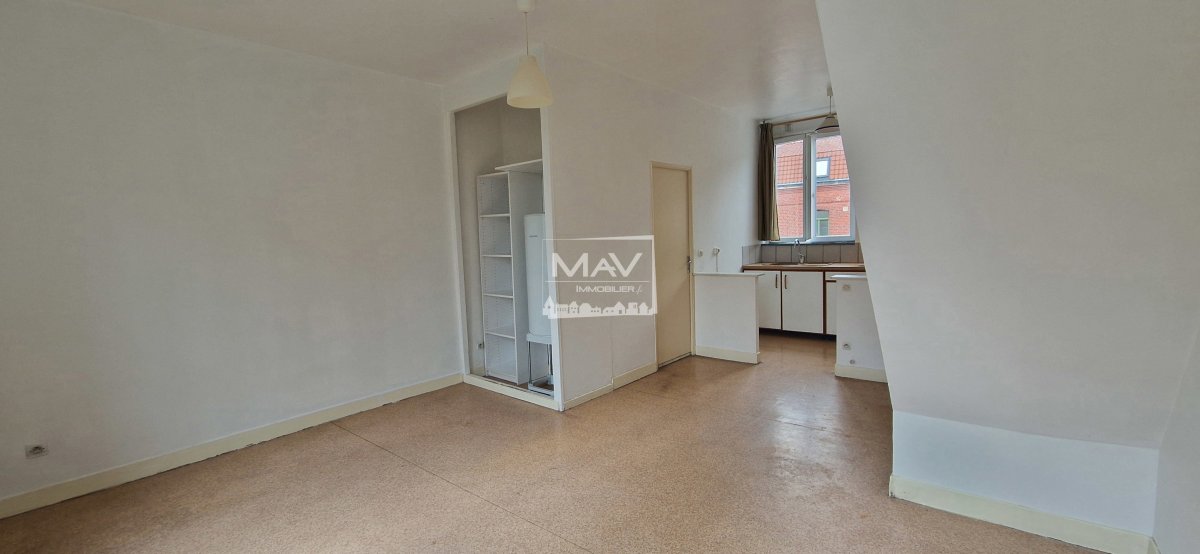 A LOUER - ROUBAIX - Rue de Brézin, au premier étage d'une petite résidence, studio de 27,99m² composé d'une pièce principale, une kitchenette, une salle d'eau avec WC. Chauffage individuel gaz - Menuiseries double vitrage PVC. A 14mn à pied du métro Gare Lebas. disponible immédiatement. Loyer : 362€ Charges locatives : 30€ (eau froide) - Dépôt de garantie : 332€ - Honoraires charge locataire : 383,87 € dont 83,97€ état des lieux