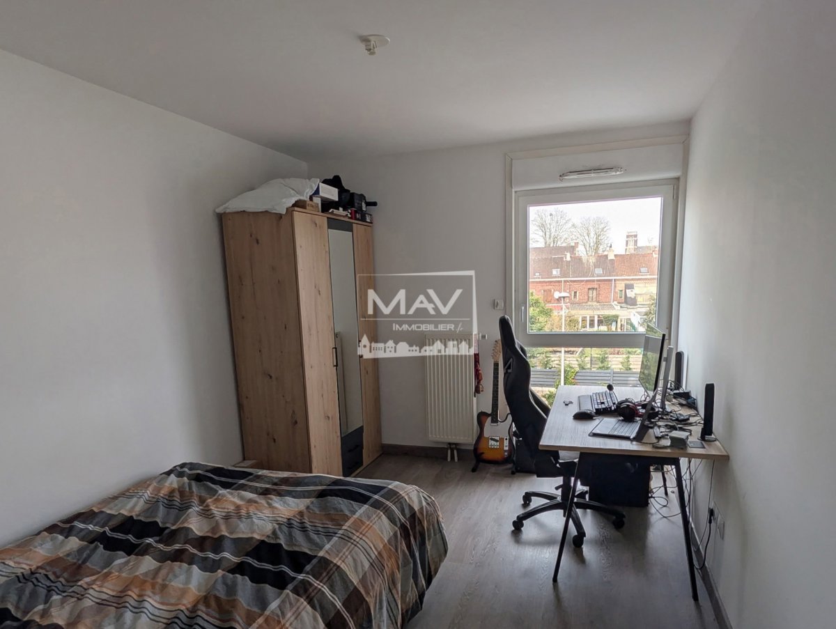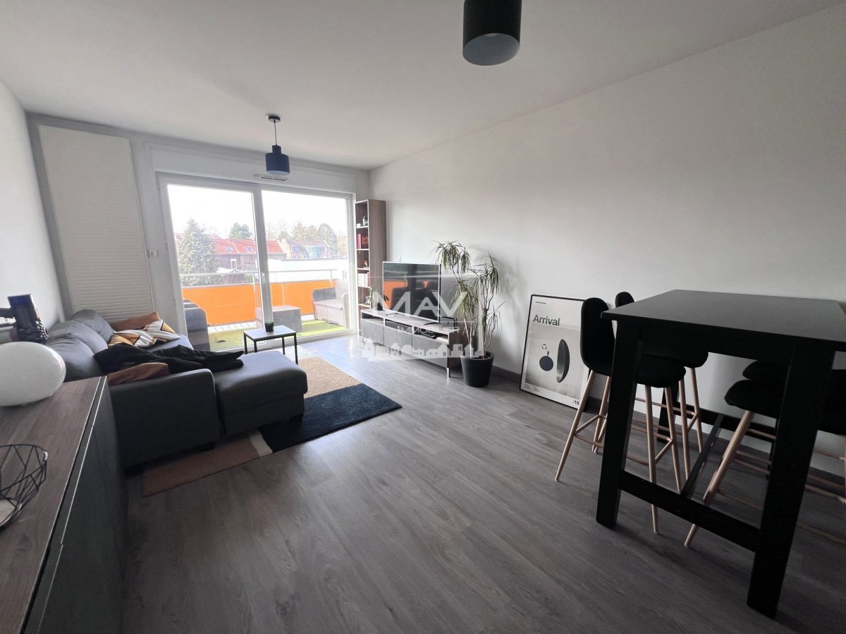 A LOUER - SAINT-ANDRE-LEZ-LILLE, rue du Président Kennedy - Au 4 ème étage avec ascenseur d'une résidence récente, très bel appartement lumineux 2 pièces de 42,64 m² offrant une entrée avec placard, salon-séjour d'environ 23 m² donnant sur balcon de 4,50 m², cuisine meublée (meubles hauts, bas, évier et hotte), une chambre d'environ 12 m², salle de douches avec WC. Une place de parking. Environnement calme et à proximité immédiate de toutes commodités : commerces de proximité (supermarchés, boulangeries, pharmacies), centres commerciaux, établissements scolaires et universitaires. Transports facilement accessibles avec plusieurs lignes de bus à proximité et accès rapide au métro ligne 1 (stations Pont de Bois et Triolo). Accès rapide aux grands axes routiers (N227, A1, A22), permettant de rejoindre facilement Lille et ses environs. Espaces verts à proximité. Disponible mi avril. Loyer : 680€ comprenant 48€ de provisions pour charges (parties communes, entretien chaudière). Dépôt de garantie : 632€. Honoraires d'agence : 554,32€ comprenant 127,92€ pour l'état des lieux. Dossier soumis aux conditions de la garantie des loyers impayés.
