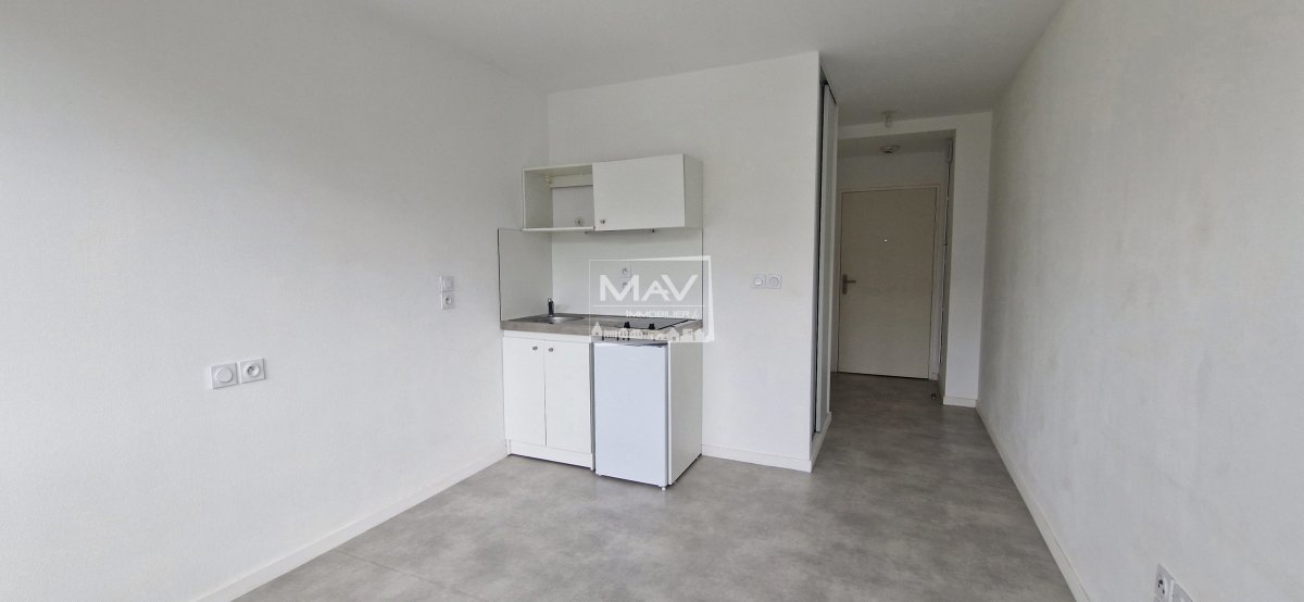 A LOUER - VILLENEUVE D'ASCQ - A proximité du centre commercial V2 et du métro M1, studio de 19,80m² au 2ème étage avec ascenseur composé d'une pièce principale avec kitchenette (plaques vitrocéramique, réfrigérateur), une salle de douche avec WC. La résidence propose un accès à une laverie et une salle de fitness. Menuiserie en double vitrage PVC et chauffage collectif. Disponible immédiatement. Loyer : 351€ dont 96€ de charges (eau chaude, chauffage, entretien des parties communes, salle de fitness) . Dépôt de garantie : 255€. Honoraires agence : 257,40€ dont 59,40€ pour l'état des lieux. Bien soumis à la Garantie Loyers Impayés.