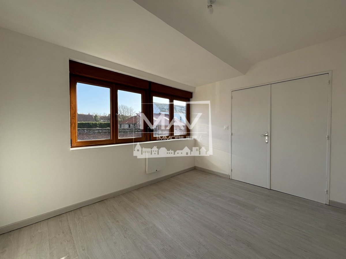 LONGUENESSE - MAISON DE 92,12m² AVEC UN JARDIN Maison mitoyenne composée d'une entrée, une buanderie, un séjour, une cuisine ouverte aménagée et équipée d'une plaque de cuisson, un four et un micro-onde, et un WC A l'étage : un palier, deux chambres dont une avec un placard de rangement, un bureau, et une salle de bain avec une douche, un lavabo et un WC. + Un jardin à l'avant et à l'arrière de la maison + Un abris de jardin Chauffage individuel avec une pompe à chaleur et des radiateurs électriquesDPE : CLoyer mensuel hors charges : 820,00€Provision de charges mensuelles : 10,00€ correspondant à la taxe d'enlèvement des ordures ménagèresDépôt de garantie : 820,00€Honoraires de visites, constitution du dossier, rédaction du bail : 650,00€Honoraires d'état des lieux : 170,00€Agence MAV Immobilier by Faustine Paty4 Bis Place Pierre Bonhomme62500 SAINT-OMERN'hésitez pas à nous contacter au 03.21.11.61.93 ou à venir nous voir en agence, si vous souhaitez plus de renseignements.