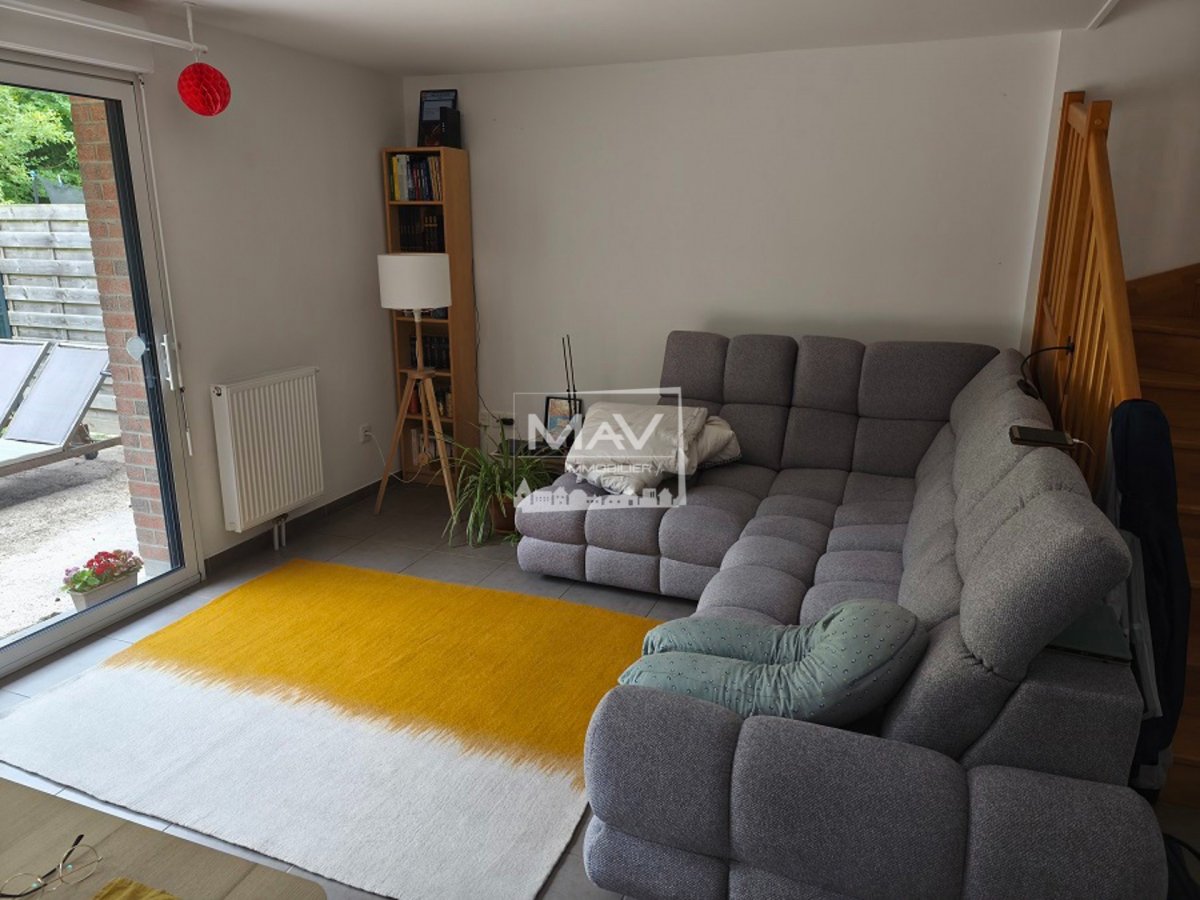 A LOUER - MARLY ( Limite VALENCIENNES) - Maison récente 4 pièces de 79,57 m² hab, une mitoyenneté, offrant une entrée avec placard, une cuisine équipée (four, plaque, hotte) et aménagée, un vaste salon séjour de 30 m², trois chambres , une salle de bains , un wc séparés. Un jardin exposition sud, une buanderie et un garage. Chauffage individuel gaz - Menuiserie double vitrage. Disponible le 23 décembre. Loyer : 843€ dont 14 € (entretien ballon eau chaude et chaudière). Eau électricité et gaz à régler à part. Dépôt de garantie : 829€. Honoraires : 875,27€ comprenant 238,71€ pour état des lieux entrant. Dossier soumis à la garantie des loyers impayés.