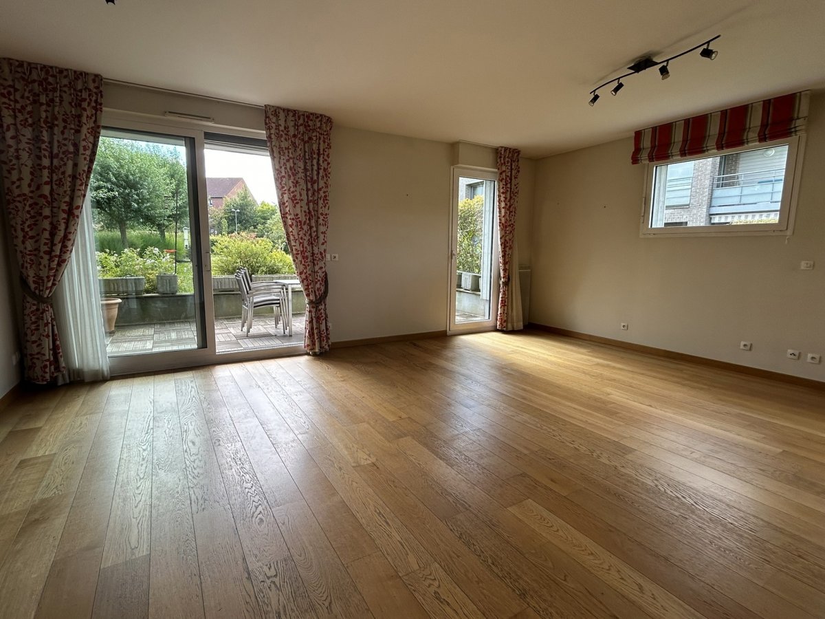 Au sein d'une résidence récente et sécurisée, appartement T4, traversant, de 100m², en rez-de-jardin offrant un hall d'entrée avec vestiaire, un WC avec lave-main, un cellier, un séjour lumineux de 35m², une cuisine équipée avec espace repas, le tout donnant sur une terrasse de 20m², exposé Sud-Ouest avec vue dégagée sur le parc. Côté nuit, un espace parental avec chambre, placards et salle de douche le tout donnant sur une terrasse de 15m², deux autres chambres avec placards et une salle de douche. Également, une place de parking privée, 2 garages box fermés en sous-sol et une cave en sous-sol. Idéalement situé à proximité du centre et des commerces, appartement lumineux avec de nombreux rangements au sein d'une copropriété verdoyante et calme.