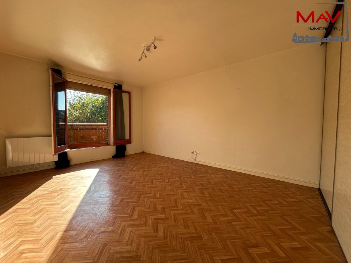 Appartement T2 de 47m², situé au DERNIER ÉTAGE, offrant un hall d'entrée avec nombreux placards, un séjour lumineux avec placards, une cuisine ouverte et équipée, le tout donnant sur un balcon avec vue dégagée, orienté Sud. Une chambre avec placards et salle de bains avec WC et espace buanderie. Également, un garage box en sous-sol et de nombreuses places de parking libres en façade. Appartement en bon état général au pied de l'arrêt de Tramway "La Marque" et à proximité immédiate des commodités.
