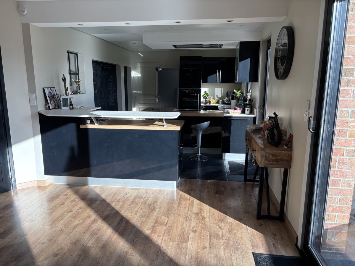 A VENDRE - CAPINGHEM - Belle maison individuelle offrant au rez-de-chaussée :hall d’entrée, salon-séjour sur cuisine américaine meublée et équipée, une suite parentale, buanderie, un dressing, WC. L’étage offre 4 chambres, une salle de bains avec douche, et un WC. Une cave. Un garage. Jardin avec terrasse. Taxe foncière : 1260€