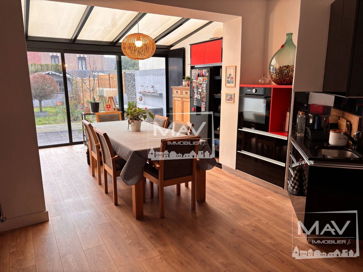 A VENDRE – ENNETIÈRES-EN-WEPPES - Très belle maison idéalement située en plein cœur du village, offrant une entrée accueillante, un salon-séjour d’environ 30 m² baigné de lumière, agrémenté d’une très belle cheminée feu de bois fonctionnelle, apportant charme et convivialité, une grande cuisine dinatoire meublée et équipée d’environ 30 m², idéale pour les repas en famille ou entre amis, ainsi qu’un bureau et une salle de douche. À l’étage : 4 chambres avec possibilité d’en créer jusqu’à 6, une salle de bains et un WC, offrant de beaux volumes et un fort potentiel pour une grande famille / famille recomposée ou un projet évolutif. Un jardin. Un garage. Situation privilégiée : à seulement 3 minutes du centre commercial Les Géants d’Englos, proche de l’institution Sainte-Marie de Beaucamps-Ligny, des écoles, commerces et services de proximité. La commune bénéficie d’un accès facilité aux transports en commun du réseau Ilévia, avec plusieurs lignes de bus (notamment 62, 64 et 65) reliant rapidement Lomme Saint-Philibert (métro ligne 2) et les communes environnantes. Les gares de Pérenchies et Haubourdin permettent également de rejoindre Lille Flandres et l’ensemble de la métropole, offrant une alternative pratique à la voiture pour les déplacements quotidiens; L'accès rapide à Lille, située à environ 15 minutes, ainsi qu’aux grands axes routiers, facilite les déplacements quotidiens tout en profitant du calme et de la qualité de vie des Weppes. L'environnement est recherché, à proximité immédiate des villages de Beaucamps-Ligny, Englos, Capinghem, Pérenchies, Escobecques, Erquinghem-le-Sec, Radinghem-en-Weppes...
