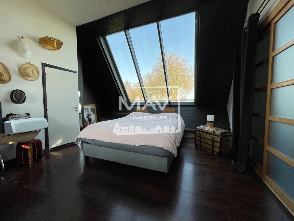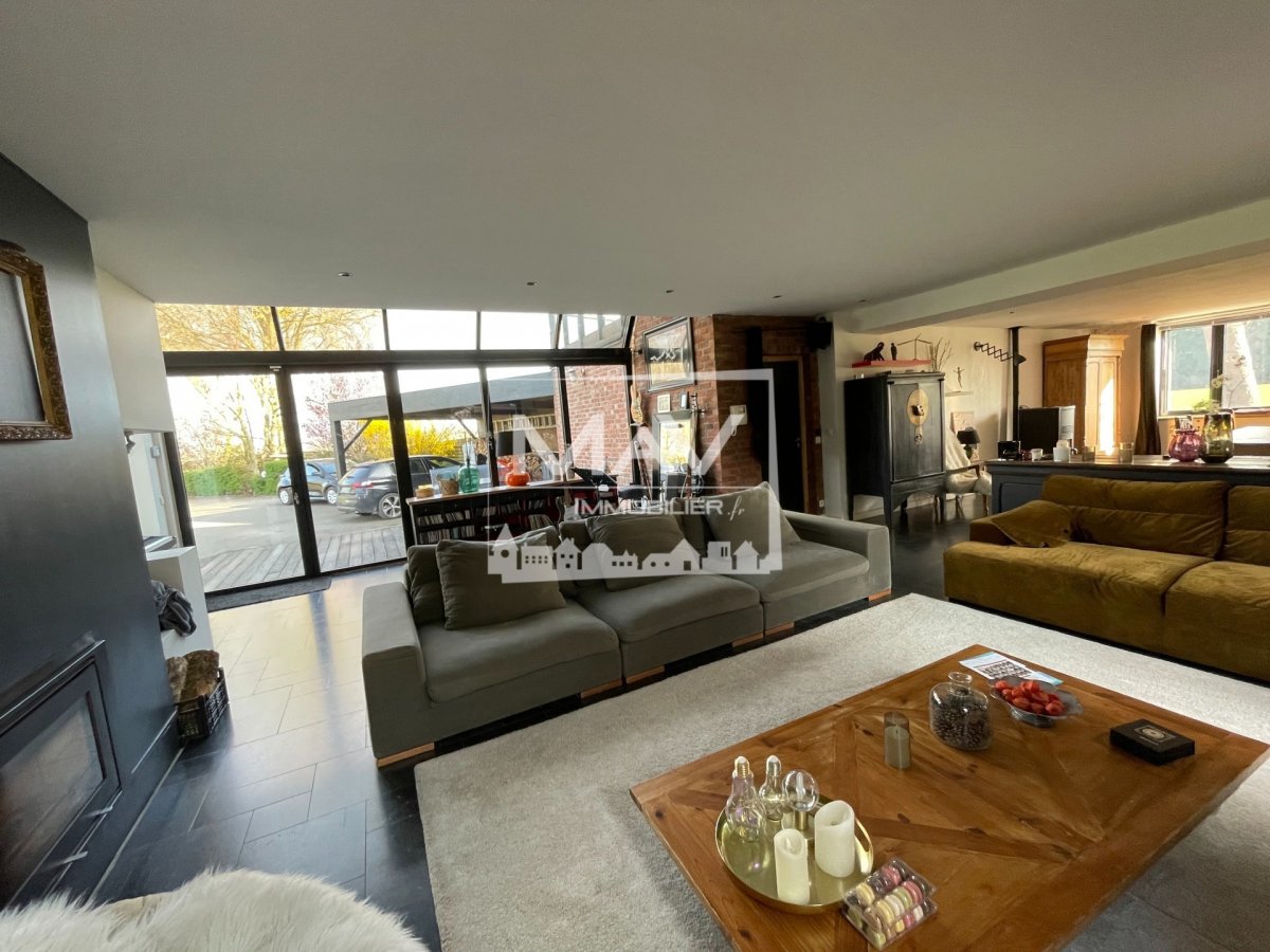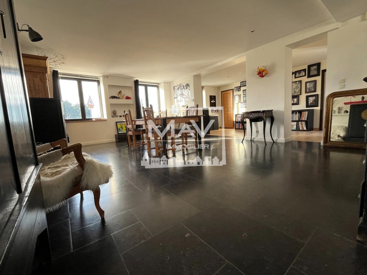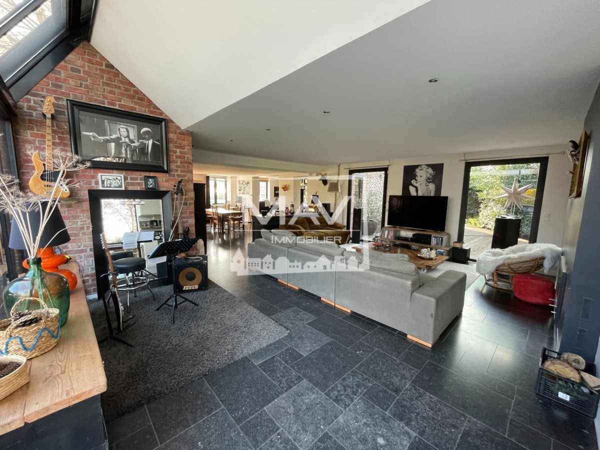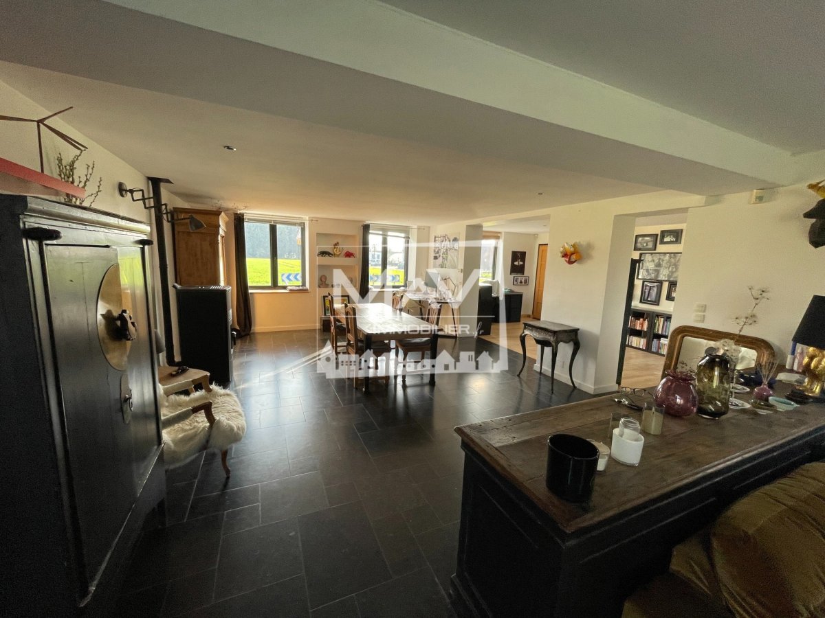 À deux pas de toutes les commodités, dans un environnement préservé avec vue imprenable sur la campagne, découvrez cette superbe maison atypique alliant avec subtilité le charme de l’ancien et l’élégance contemporaine. Pensée comme un véritable lieu de vie, la maison s’ouvre sur différentes ambiances de jardin, créant des univers extérieurs distincts, intimistes et parfaitement intégrés à l’architecture. Les volumes sont remarquables, les perspectives nombreuses, et chaque espace intérieur dialogue harmonieusement avec l’extérieur. La superbe pièce de vie, chaleureuse et spectaculaire, accueille un poêle à bois ainsi qu’une cheminée feu de bois, offrant une atmosphère unique pour les amoureux de moments partagés en famille ou entre amis. Les larges ouvertures prolongent naturellement les espaces vers un grand jardin sans vis-à-vis, avec une vue à perte de vue sur la campagne. La maison propose quatre chambres, dont un magnifique coin parents bénéficiant d’une ouverture sur le ciel, véritable cocon intimiste. Une salle de bain et une salle de douche complètent l’espace nuit. Les prestations sont à la hauteur : chauffage par le sol, poêle à granulés, finitions soignées. À l’extérieur, de nombreux stationnements, un très grand garage, un carport et une cave viennent parfaire l’ensemble. Aucun travaux à prévoir. Un lieu rare, à la fois inspirant et apaisant, offrant un cadre de vie idyllique entre nature et proximité urbaine.