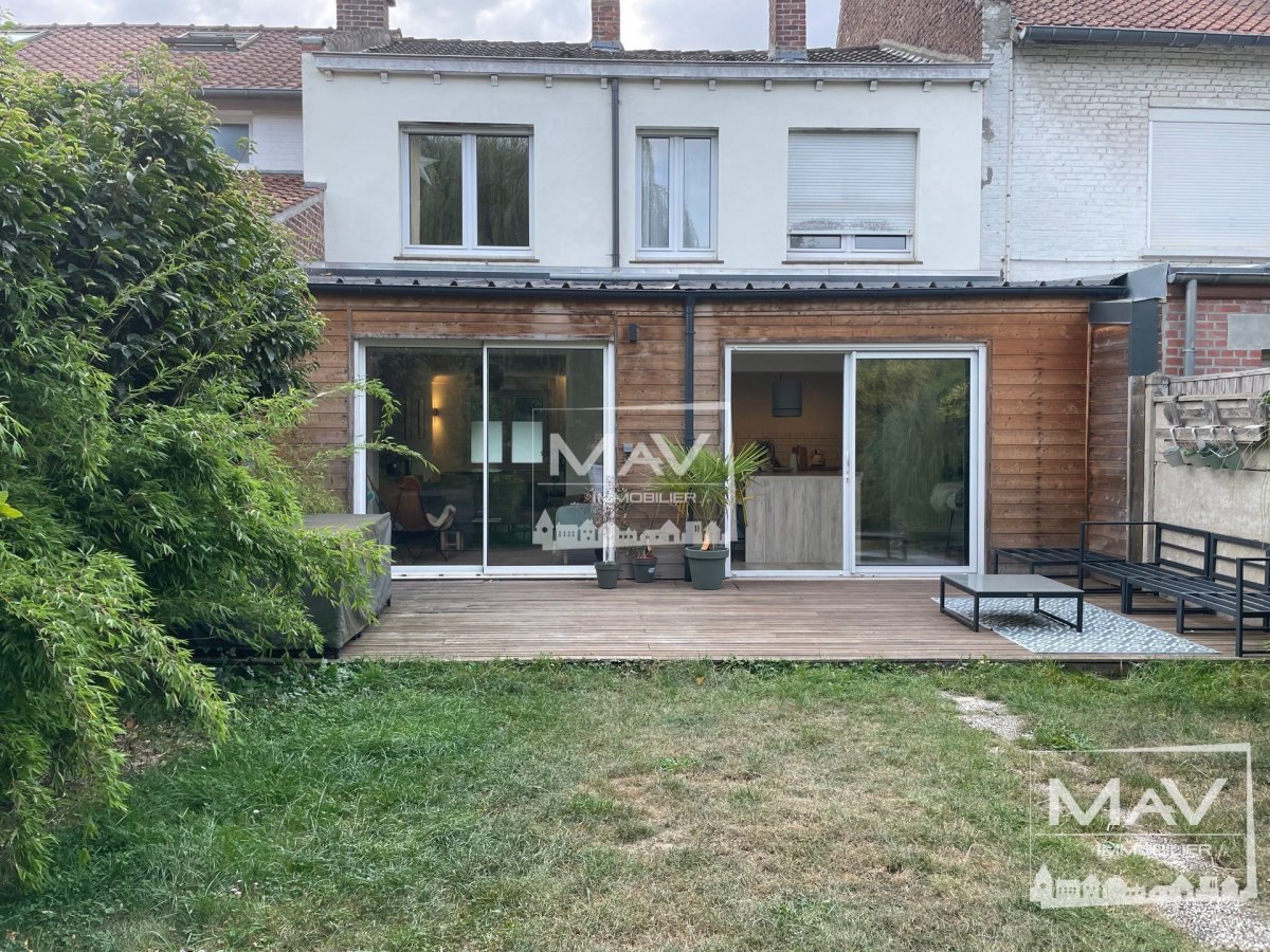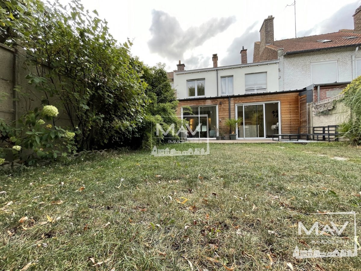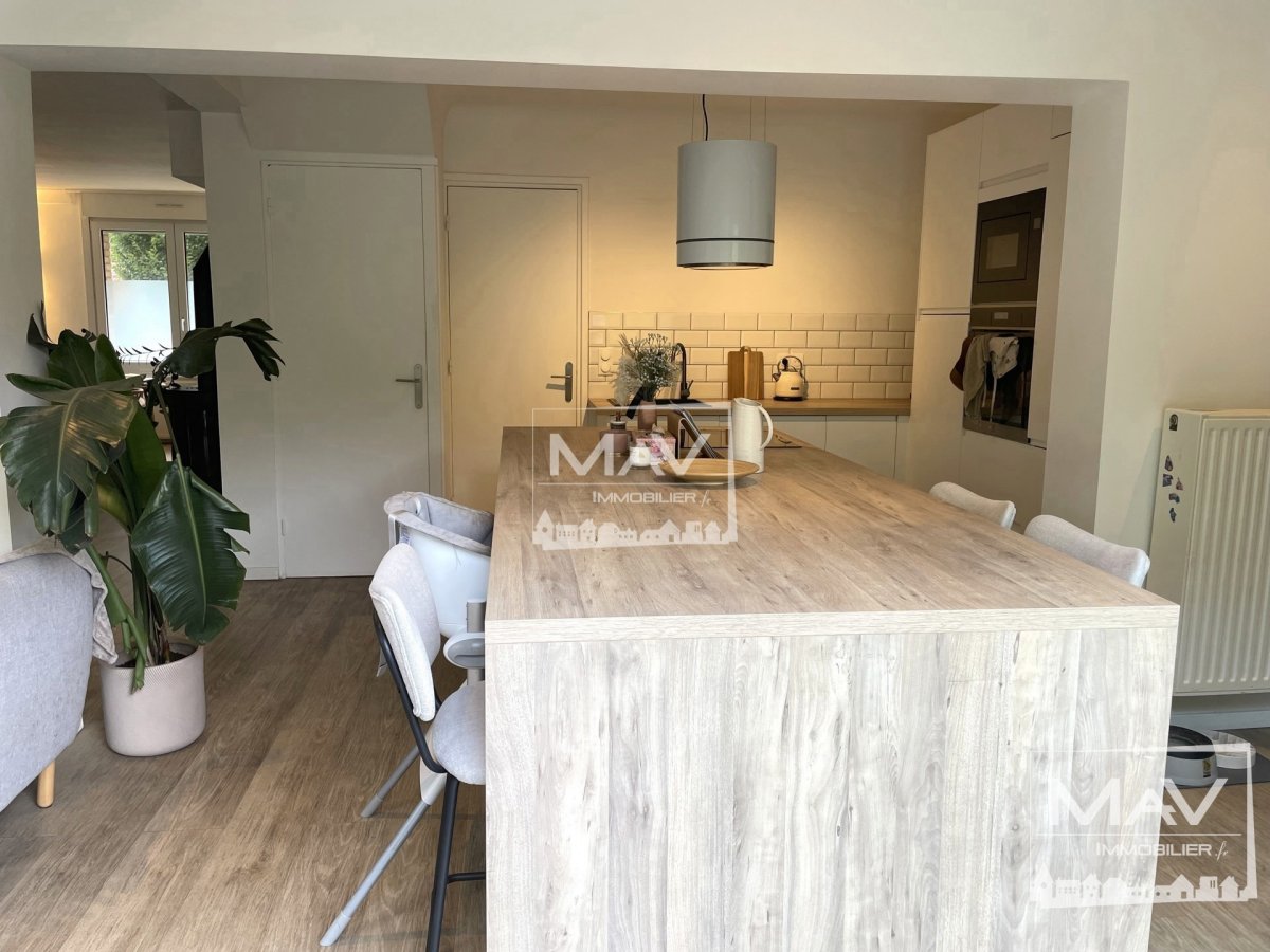 Très belle maison mitoyenne de 1963, avec sa grande pièce de vie, lumineuse et ses baies donnant sur une terrasse et son jardin arboré et sans vis à vis. Cette maison a été refaite entièrement en 2020, la déco est très actuelle et n’a pas de travaux à prévoir. A l’étage, on retrouve 3 chambres spacieuses et une grande salle de douche. Elle dispose également d’une cave, d’un garage et d’emplacement de parking. Possibilité de créer, un étage supplémentaire en ossature bois, pour pouvoir obtenir des espaces supplémentaires. Elle est située dans un quartier très prisé de Marcq en Baroeul, au calme et à deux pas des transports, des axes routiers, commerces, d’un parc et des écoles. Le + de cette maison, elle est sur deux niveau et avec des planchers bétons.
