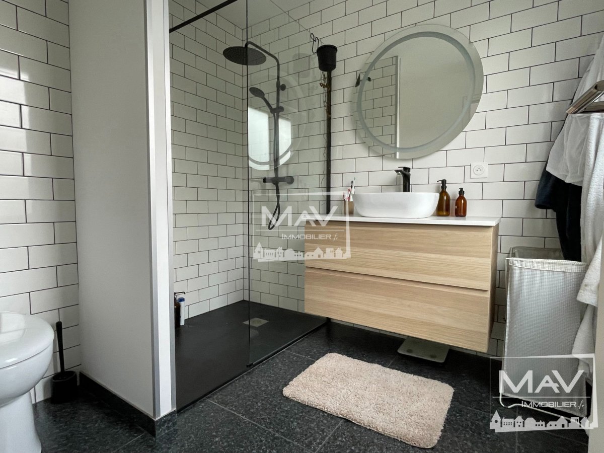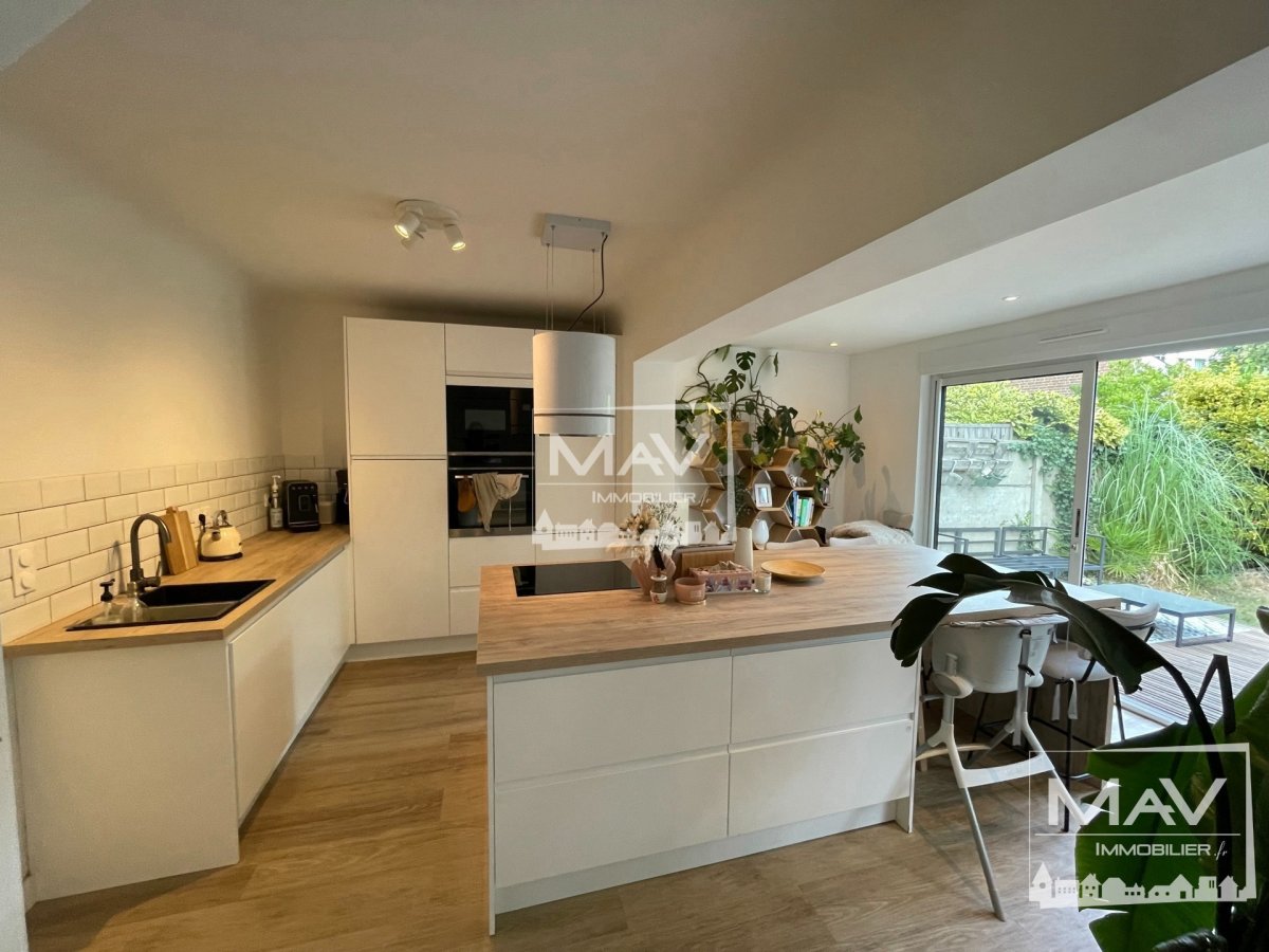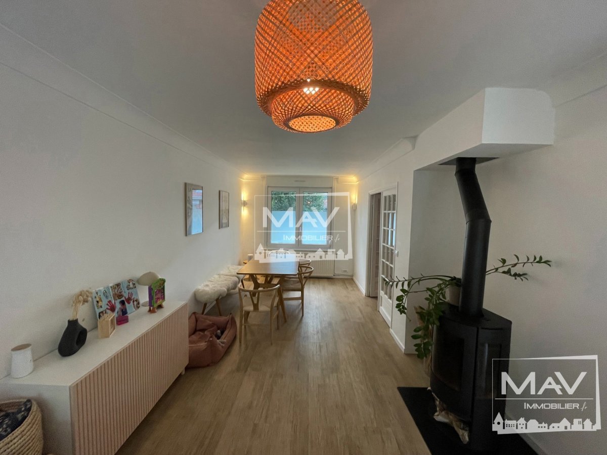 Très belle maison mitoyenne de 1963, avec sa grande pièce de vie, lumineuse et ses baies donnant sur une terrasse et son jardin arboré et sans vis à vis. Cette maison a été refaite entièrement en 2020, la déco est très actuelle et n’a pas de travaux à prévoir. A l’étage, on retrouve 3 chambres spacieuses et une grande salle de douche. Elle dispose également d’une cave, d’un garage et d’emplacement de parking. Possibilité de créer, un étage supplémentaire en ossature bois, pour pouvoir obtenir des espaces supplémentaires. Elle est située dans un quartier très prisé de Marcq en Baroeul, au calme et à deux pas des transports, des axes routiers, commerces, d’un parc et des écoles. Le + de cette maison, elle est sur deux niveau et avec des planchers bétons.
